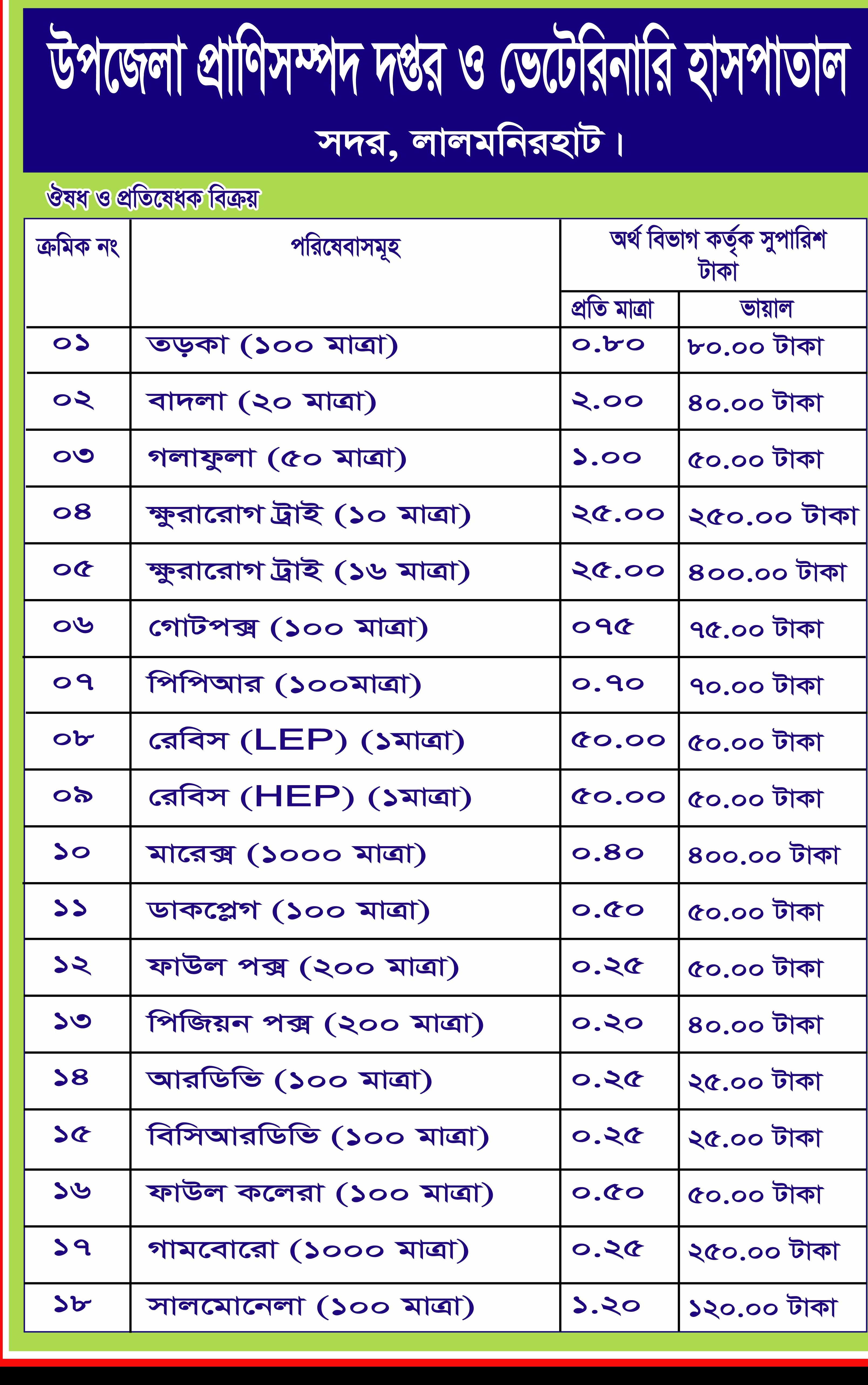 ১.৫ মজুদ থাকা সাপেক্ষে ব্যবস্থা পত্র অনুযায়ী কম্পাউন্ডার দ্বারা ঔষধ সরবরাহ
